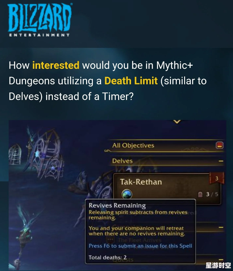 在现行的大秘境机制中,时间耗尽会导致钥石降级,并且玩家死亡会触发“挑战者的危境”,进一步缩短时间限制。而新的提议旨在取消计时机制,改为以总死亡次数作为核心限制。例如,在某些玩法中,玩家仅有五次死亡机会,超过则无法获得最终奖励。这是否预示着大秘境将引入类似的新系统?